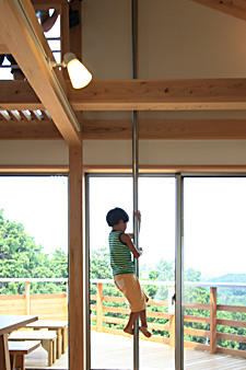 2階のリビングには、はしごで登るロフトがあるんですが降りるときはポールで一気に降りれるようになっていたりと遊び心も追加しました。