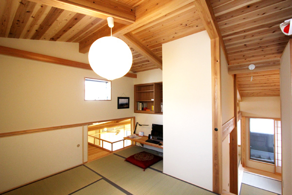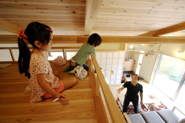 確かにその通りで他の部屋で用事をしていても下から様子が見えるから子供や孫たちが近くに感じられるし、なにか用事があっても上下で物が渡せるのでとても便利ですね。