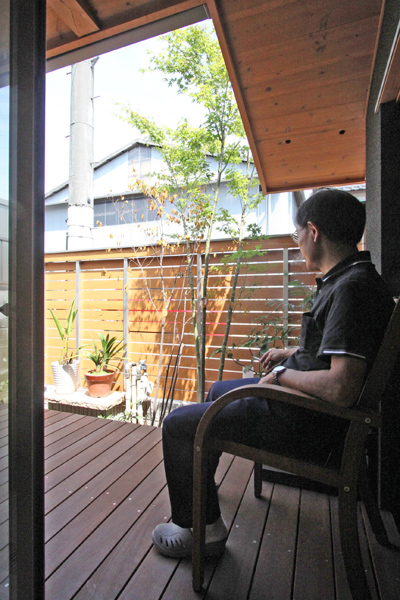 広いデッキと植えて頂いた木々のおかげで思っていたよりも広く感じる空間になって心地よいです。