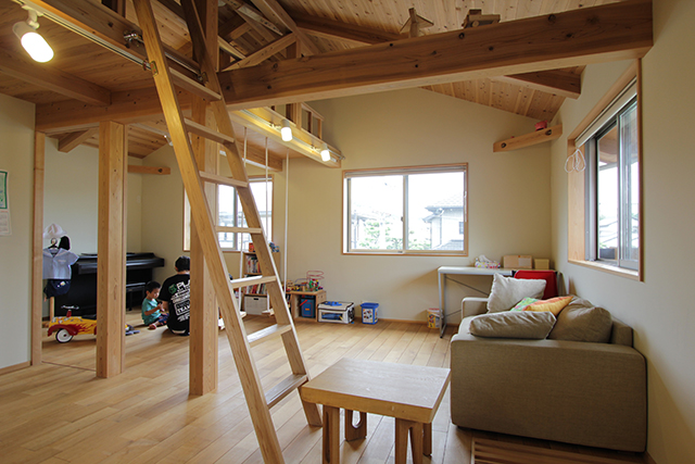 2階はワンルームで、子どもが広々と遊べるスペースになっています。