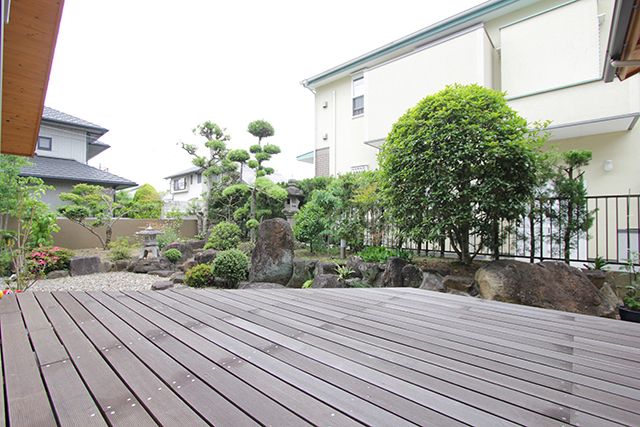 思い出の庭は残したままに、木のぬくもりを感じる新しい二世帯住宅へ。