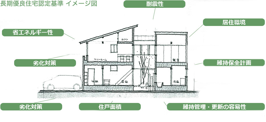 長期優良住宅:長期にわたり良好な状態で使用するための措置が講じられた優良な住宅(出展:国土交通省)